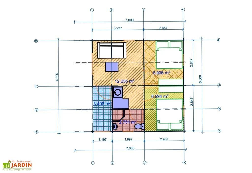 Les dimensions extérieures de l’abri sont de 6 x 6 x 2,58 m (l,l,h). Les dimensions intérieures de l’abri mur simple sont de 5,85 x 5,85 x 2,03 m (l,l,h). Les dimensions intérieures de l’abri mur double sont 5,50 x 5,50 x 2,03 m (l,l,h). Les dimensions extérieures hors tout de l’abri de jardin sont de 7 x 6 ,52 x 2,58 m (l,l,h).