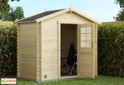 Le bois de l’abri de jardin est brut. Pour une plus longue durée de vie il est conseillé de le traiter contre les insectes et la moisissure et de le lasurer tous les deux ans. La garantie est de 2 ans.