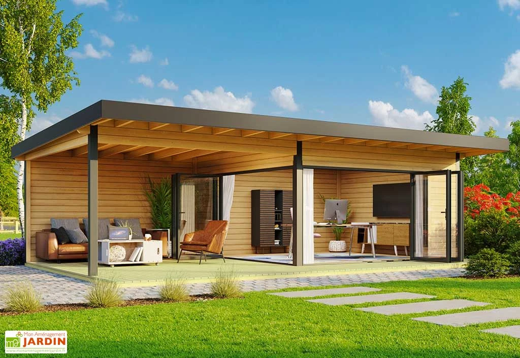 Ce studio de jardin Doméo 10 à l’avantage de posséder une pièce spacieuse, qui donne sur une terrasse couverte de 18 m². Vous aurez l’occasion d’aménager l’ensemble de l’annexe selon vos envies. Il est par exemple possible d’installer un bureau ou une chambre d’amis dans l’espace intérieur, et de prévoir une cuisine extérieure ainsi qu’une salle à manger pour la terrasse. Si vous souhaitez rendre cette pièce habitable, il vous faudra au préalable l’isoler parfaitement.