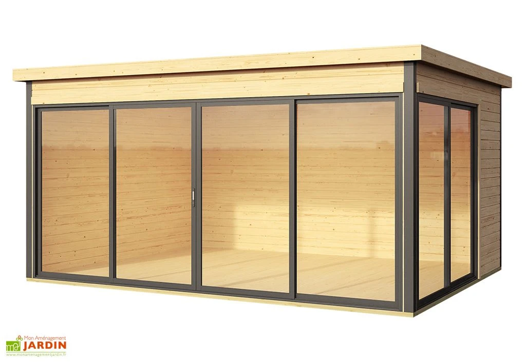 Cet abri offre une surface totale de 15 m². Vous pourrez donc y aménager une chambre d’amis ou un bureau, entre autres. Parfaitement étanche, notamment grâce à des protections d’angle en aluminium et à une toiture en voliges 18 mm couverte de feutre bitumé (une couverture définitive est à prévoir pour assurer une étanchéité optimale sur le long terme), le Domeo 4 Plus est un abri semi-habitable.