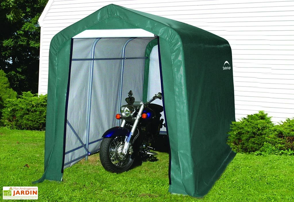 Cet abri en toile Shelter Logic se monte aussi vite qu’il se démonte grâce à sa structure tubulaire en acier. Cette structure, de 35 mm de diamètre, est couverte d’un revêtement pour une protection maximale contre la corrosion. La structure est recouverte d’une bâche parfaitement étanche en polyéthylène de 210 gr/m². Cette bâche verte se fond aisément dans le jardin et elle est protégée contre les UV.