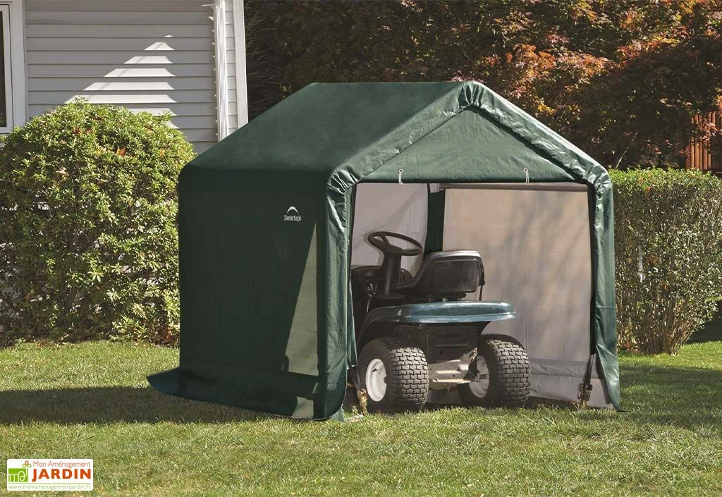 Bien que souple, cet abri reste résistant grâce à sa paroi arrière renforcée, à ses 8 sangles d’arrimage et à ses 4 ancrages anti-tempête de 38 cm. Aucune fondation au sol n’est nécessaire, vous pouvez l’installer où vous le souhaitez dans le jardin.