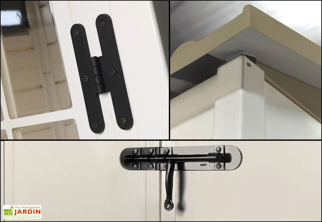 Le plancher est inclus avec l’abri de jardin en PVC, ce qui permet de l’isoler du sol et de maintenir son étanchéité. C’est un plancher de dalles en bois composite qui possède une épaisseur de 45 mm et qui vous permet d’éviter la création d’une dalle de béton.