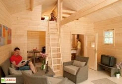 Chalet En Bois Habitable Isolé 90 Mm Double Vitrage Toit Plat 23,04 M²