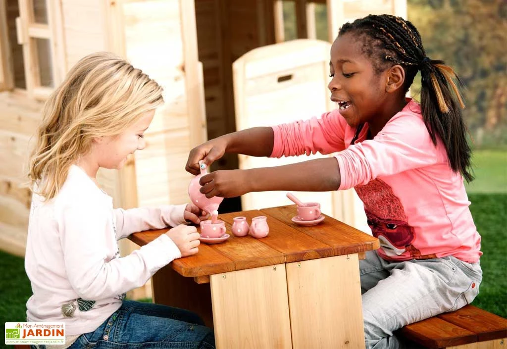 Votre table de pique-nique XL de chez Axi est en bois de cèdre tropical non traité. La table est livrée avec ses bancs assortis et vous permettra d’aménager votre maisonnette pour enfant. Les dimensions au sol sont : 70 x 80 x 45 cm (l,l,h). Votre ensemble de pique-nique répond aux normes EN71 et est approuvé TUV/GS. La garantie est de 10 ans sur le bois.
