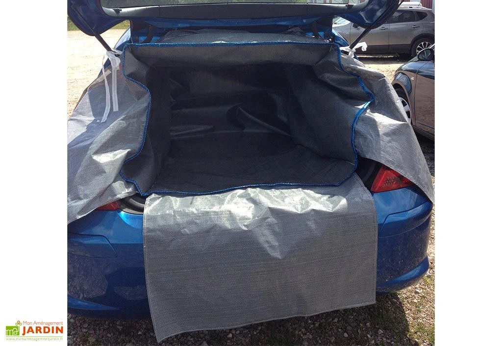 Spécialement conçue pour s’adapter aux coffres des citadines (voir liste des modèles compatibles dans les visuels), cette bâche pour voiture mesure 100 cm de large sur 130 cm de profondeur pour 85 cm de haut. Ces dimensions passeront à 50 x 55 cm une fois la bâche repliée.