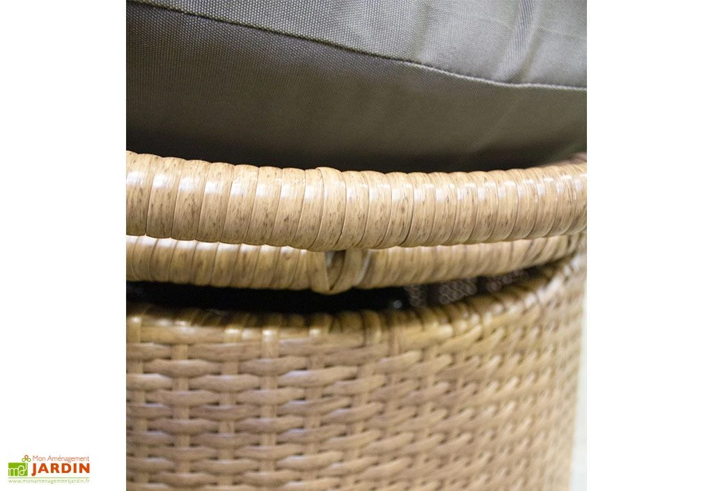 Son armature en aluminium garantit une résistance à la rouille, mais aussi une facilité de transport du fait de la légèreté de ce matériau. La résine tressée vous assure également une longue tenue face aux intempéries et aux changements de température. La balancelle peut supporter 120 kg maximum.