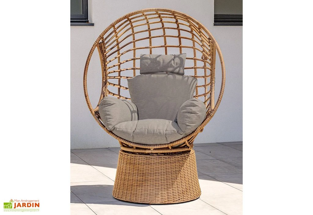 La balancelle Bora Bora de la marque Paris Garden est idéale pour profiter de vos moments de détente dans votre jardin ou sur votre terrasse grâce à son assise pivotante. Sa forme circulaire en résine tressée sublimera votre jardin en lui apportant une touche chaleureuse et cosy.