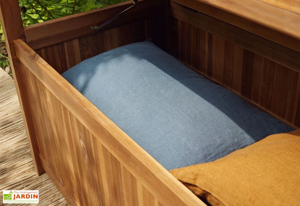 Le banc coffre d’extérieur est fabriqué en acacia, un bois tropical qui apportera de l’originalité et de la chaleur à votre jardin. Le bois est certifié FSC, il provient donc de forêts gérées dans le respect de l’environnement. Il est conseillé d’huiler votre banc une fois par an afin que le bois conserve sa couleur d’origine.