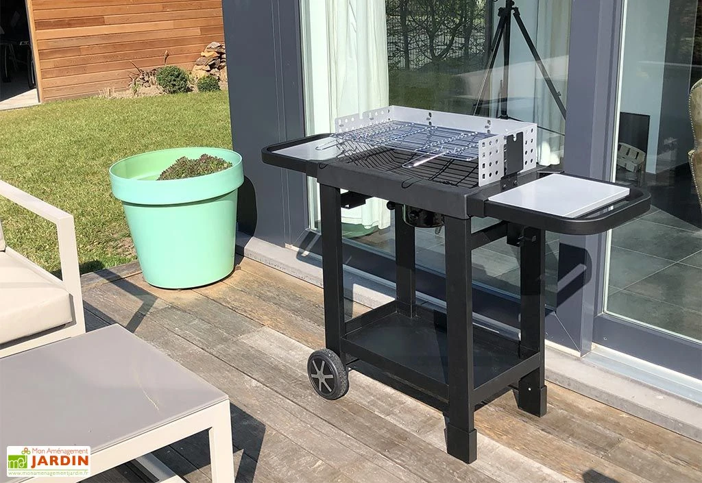 Le barbecue Easy 60 de Cook’in Garden est équipé d’un support moteur, d’un système d’allumage rapide, et d’un pare-vent de 4 niveaux différents. Grâce à ses 2 tablettes latérales amovibles vous pourrez cuisiner en toute simplicité et accrocher vos ustensiles aux crochets de rangement.