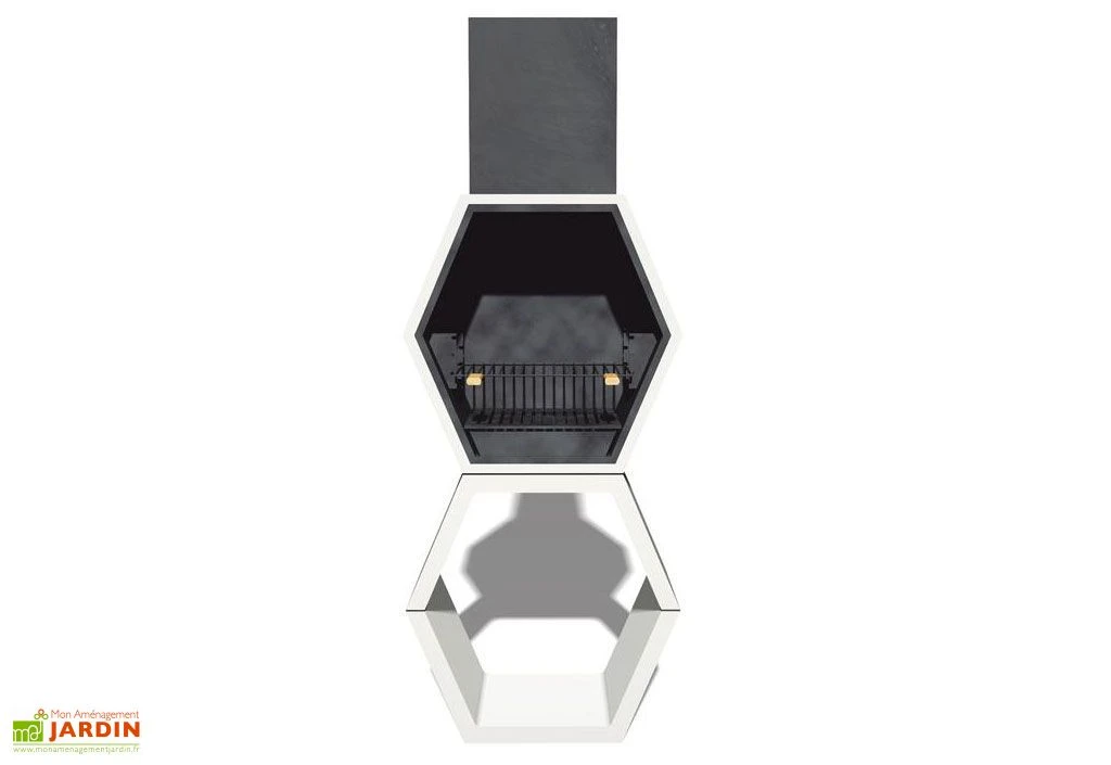 L’intérieur du barbecue de jardin intègre une plaque en métal non corrosif et profite d’une finition réalisée à l’aide d’une peinture thermo-résistante. Il comprend également une grille en acier inoxydable réglable en hauteur et un bac à cendres.