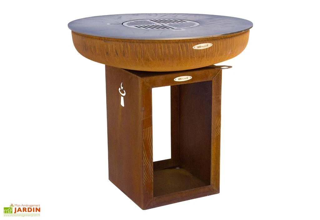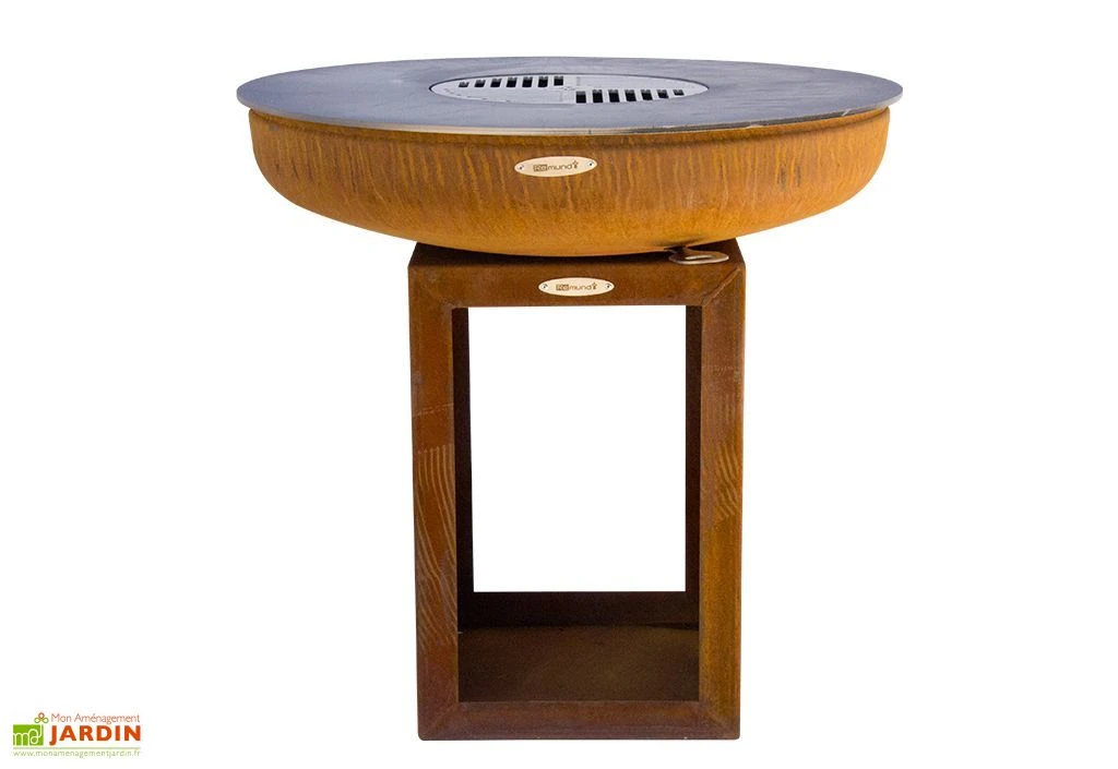 Le braséro barbecue Carus M de Remundi est assemblé en Allemagne et fabriqué de façon artisanale et trouve sa place sur la terrasse ou dans le jardin. Son corps en acier a subi un processus de corrosion naturelle, qui n’altère pas sa solidité mais qui lui offre un beau design vieilli qui fait tout son charme.