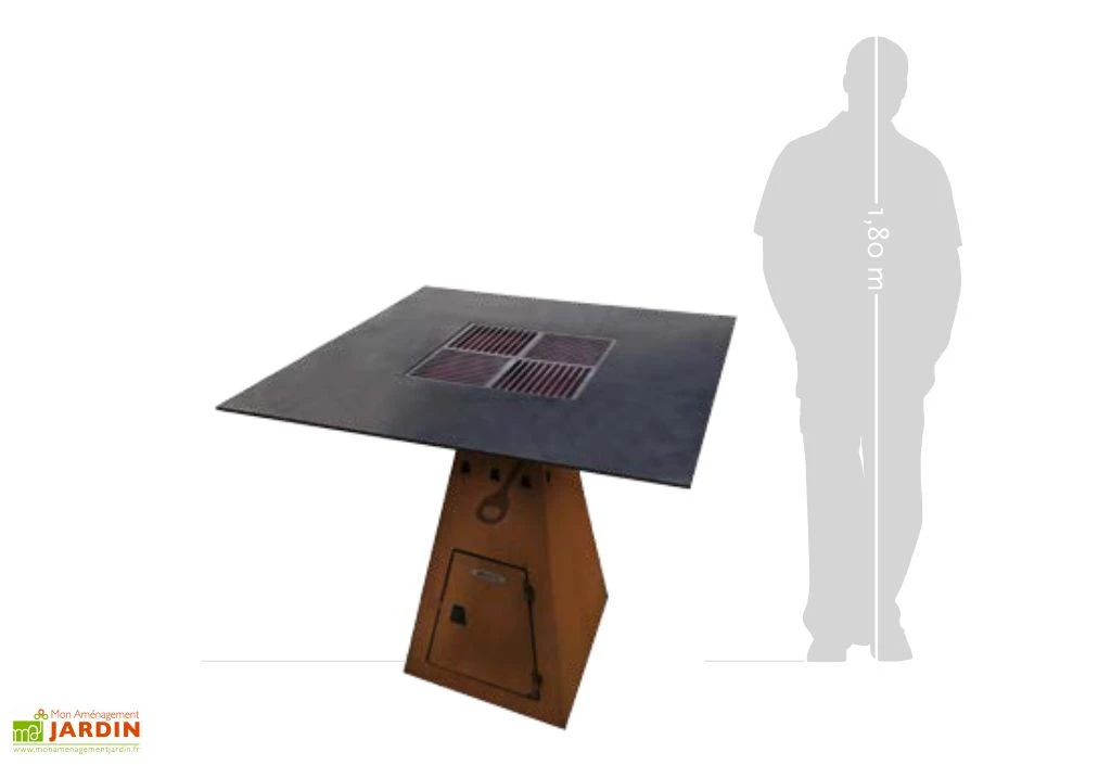 Le braséro Cube M de Remuni est un braséro carré de 82 x 82 cm de côté et de 81 cm de hauteur. Double fonction, il sert à la fois de chauffage extérieur et de barbecue grâce à sa plaque de cuisson en inox. Il s’installe dans le jardin ou sur la terrasse et vous permet de profiter d’un moment en famille ou entre amis.