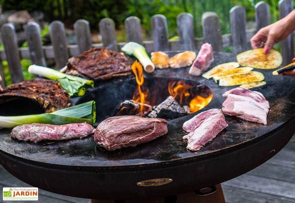 Le braséro en acier mesure 79 cm de hauteur. Sa plaque de cuisson en inox mesure 82 cm de diamètre vous permet de disposer de plusieurs zones de chauffe. Vous pouvez ainsi choisir où déposer les aliments suivant la cuisson dont ils ont besoin. La température varie de 100°C à 350°C suivant la zone de chauffe.