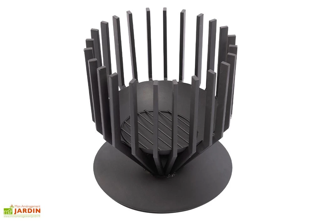 Ce braséro possède un style industriel et saura habiller votre extérieur, vous pourrez le déplacer facilement car il pèse au total 7,6 kg. Il possède un revêtement en poudre noir qui résiste à la chaleur. Afin de pouvoir le garder le plus longtemps possible, il est recommandé de nettoyer le cadre le lendemain ou le surlendemain après refroidissement.