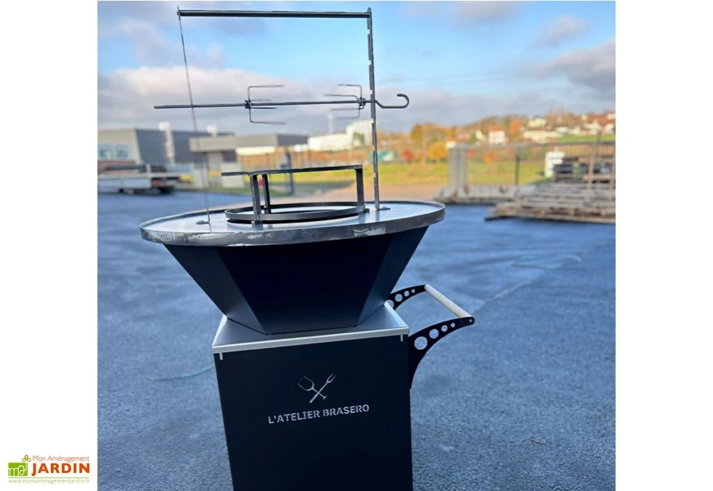 Ce brasero est à la fois design et fonctionnel car il a pour particularité d’être monté sur roulettes afin de le déplacer facilement. Une poignée démontable est également présente sur ce brasero afin d’apporter une touche esthétique et fonctionnelle en plus.