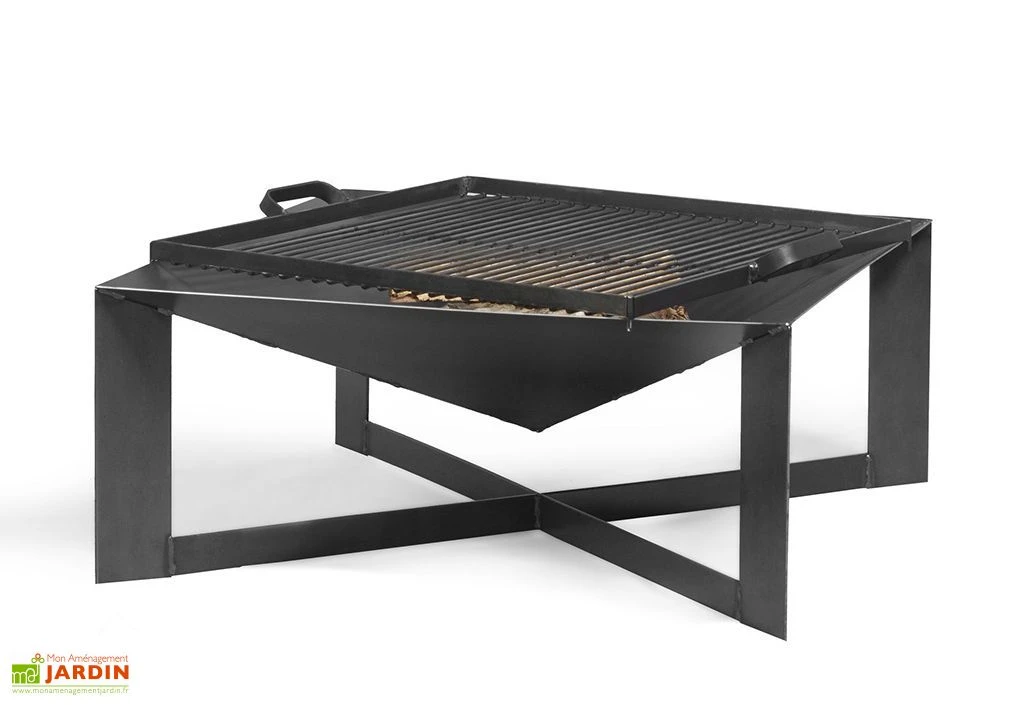Le braséro se transforme en barbecue grâce à sa grille de cuisson, incluse. La grille de cuisson mesure 58 x 58 cm de coté, dispose d’un cadre de 20 x 4 mm et de barres de 5 mm. Le braséro dispose d’une cuve de 2 mm d’épaisseur. Profitez de votre jardin avant et après la saison grâce à de belles flambées et profitez de bonnes grillades en transformant le braséro en un instant.