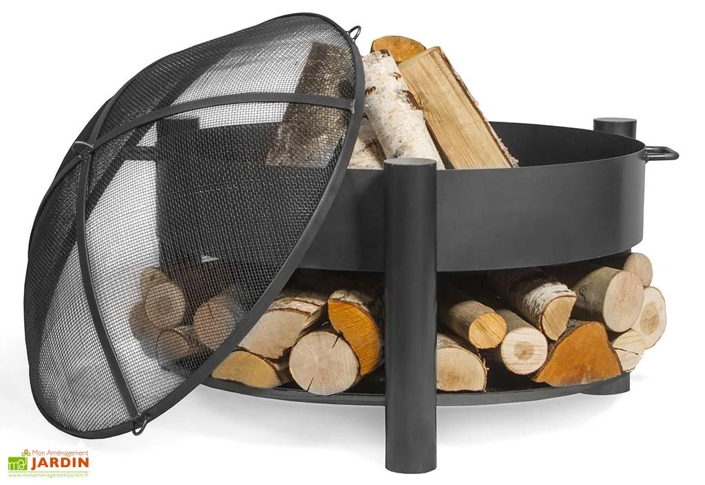 Le braséro dispose d’une cuve de 2 mm d’épaisseur et d’un pare étincelles avec un cadre de 4 x 20 mm et des mailles de 1,5 mm.