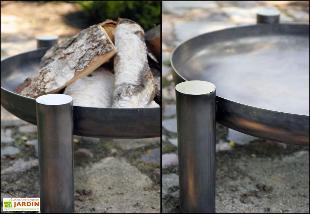Le braséro est disponible en 3 dimensions : 60, 70, et 80 cm. Le braséro de 60 cm mesure 30 cm de hauteur et pèse 10 kg. Le braséro de 70 cm mesure également 30 cm de hauteur et pèse 12 kg. Le braséro de 80 cm mesure 30 cm de hauteur et pèse 14 kg. Leurs poids légers permettent de les transporter facilement d’un point à l’autre du jardin. La garantie est de 2 ans.