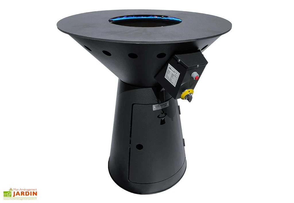 Ce braséro de jardin est fabriqué en acier, un matériau extrêmement résistant qui, grâce à son thermolaquage, ne craindra ni les intempéries ni autres agressions extérieures, le tout sans exiger d’entretien. Sa finition de couleur noire lui permettra également de s’intégrer plus facilement dans des jardins de styles divers. La cuve du braséro est équipée de contrôles permettant d’allumer le foyer tandis que son socle intègre un tiroir récupérateur de cendres et une ventilation.