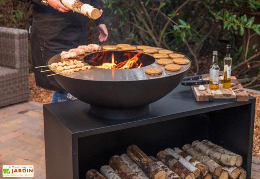 Un range bûches est également intégré à ce braséro et vous permettra ainsi de pouvoir alimenter votre feu facilement pendant la cuisson.