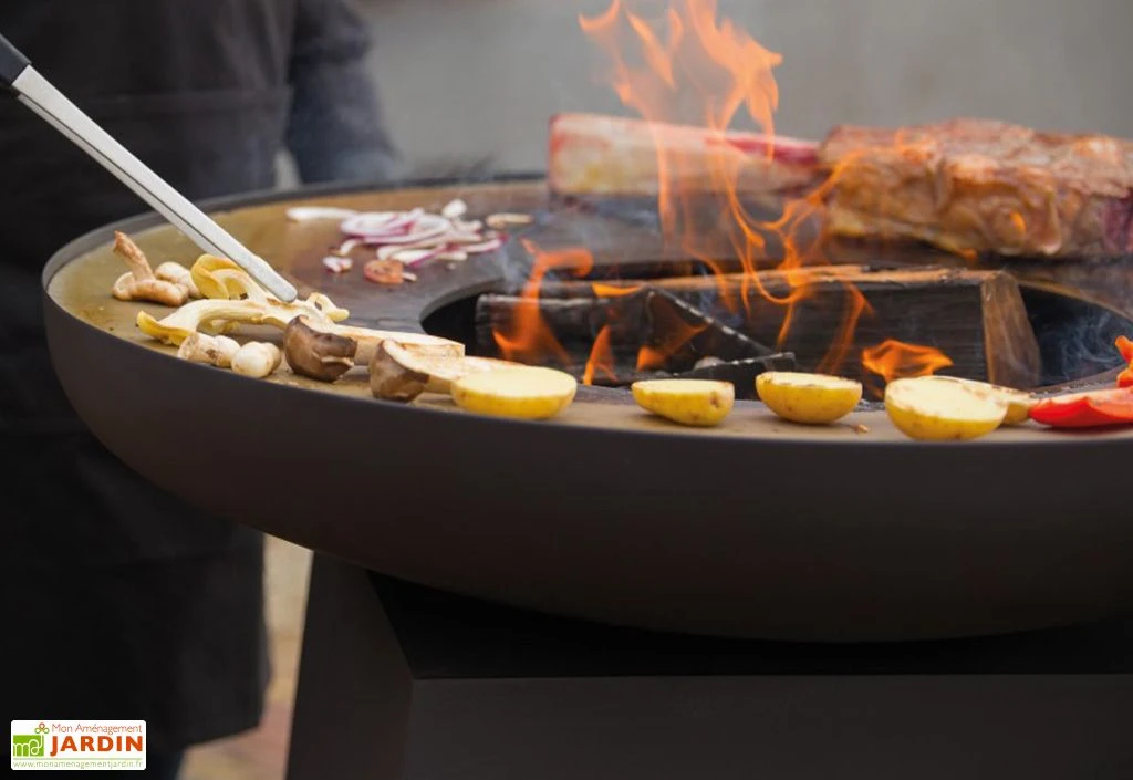 Le braséro de Redfire est à la fois un braséro classique, idéal pour réchauffer vos nuits d’été, et une plancha. Fabriqué en acier de 1,5 à 2 mm d’épaisseur, il dispose d’une plaque de 80 cm de diamètre et de 6 mm d’épaisseur en acier inoxydable, idéale pour cuire vos aliments.