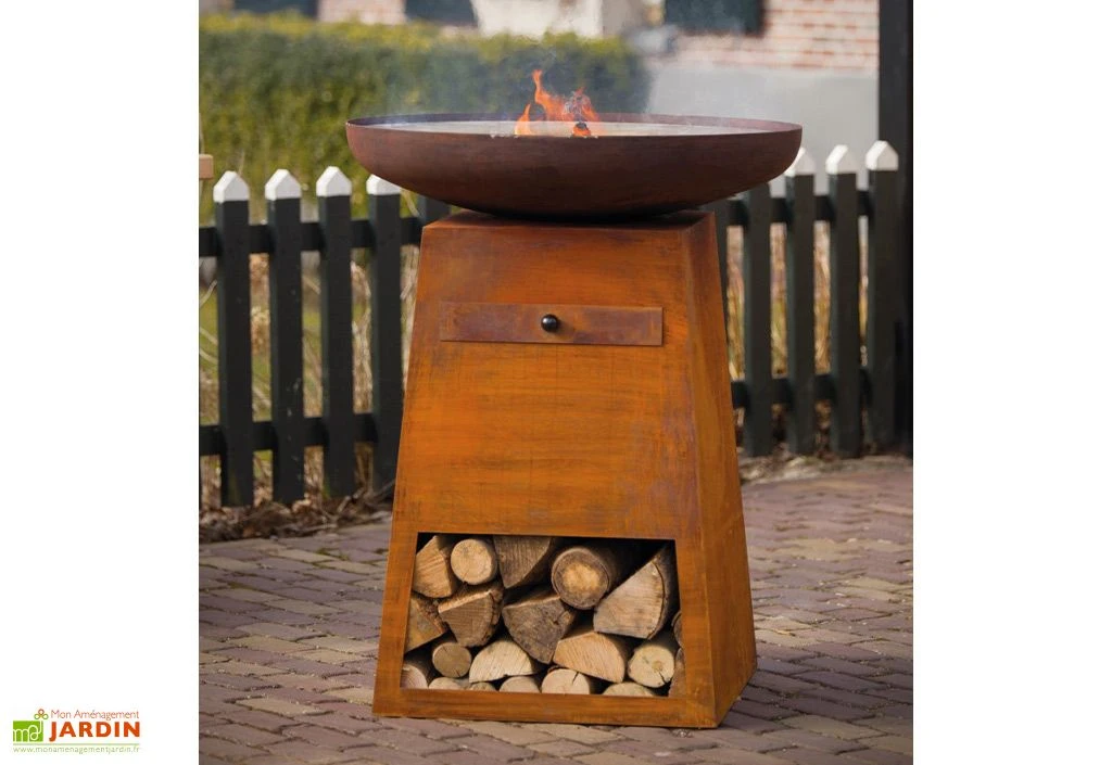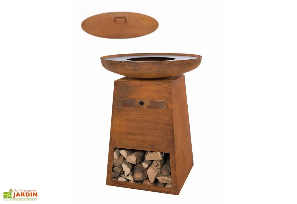 Ce braséro barbecue dispose d’une plaque en acier inoxydable d’une épaisseur de 6 mm qui vous permet de faire cuire vos aliments. Il est équipé d’un récupérateur de cendre, d’un couvercle et d’un espace de stockage pour le bois.