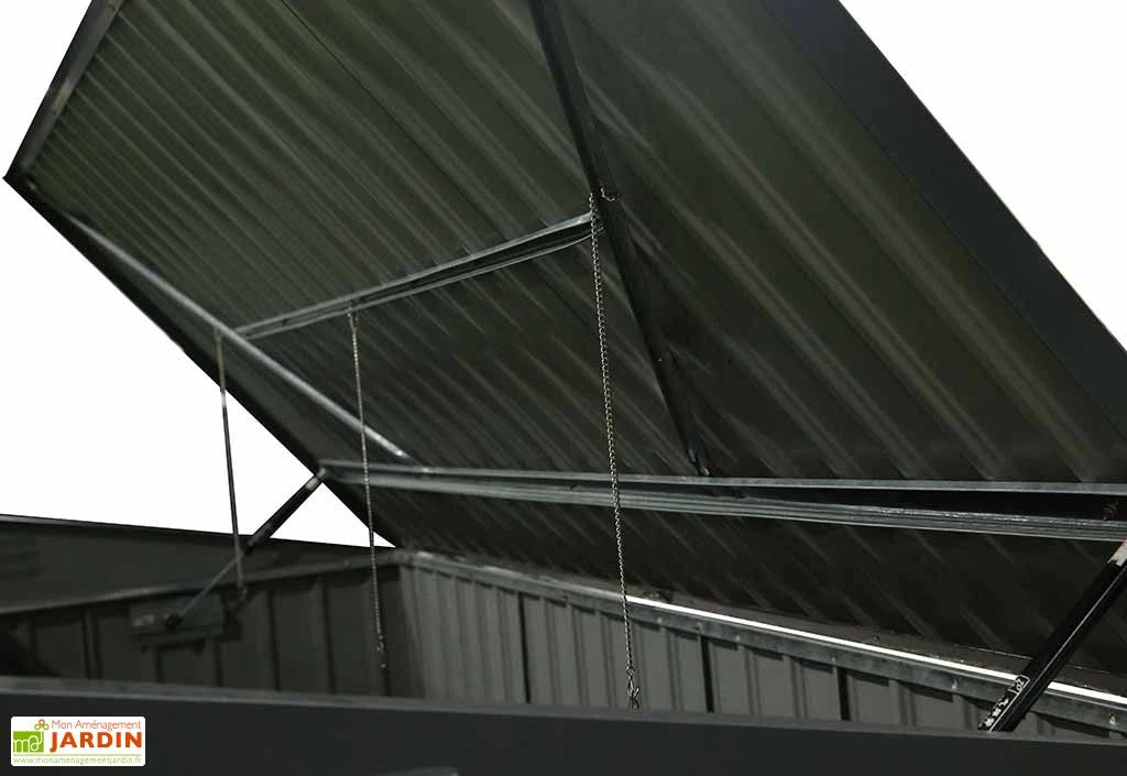 Entièrement fabriqué en acier galvanisé, cet abri pour poubelles ne craindra ni les chocs ni le mauvais temps, le tout sans demander d’entretien particulier. Sa finition gris anthracite lui permettra par ailleurs de s’intégrer plus facilement dans votre extérieur.