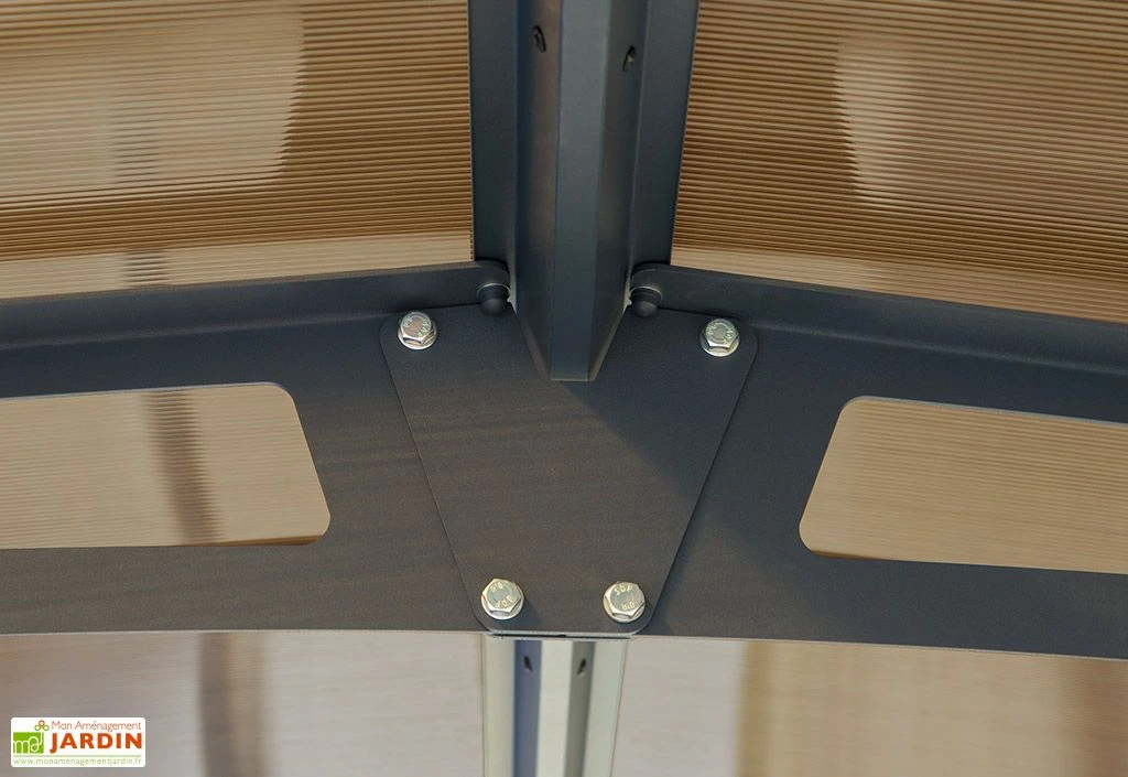 Afin d’offrir à votre voiture une protection optimale, ce carport en aluminium s’est vu doté d’une couverture constituée de panneaux en polycarbonate semi-transparent de 6 mm d’épaisseur. Très solides, ces panneaux sont conçus pour filtrer 100% des rayons UV, ce qui leur évite de jaunir tout en préservant votre véhicule d’une surexposition au soleil.
