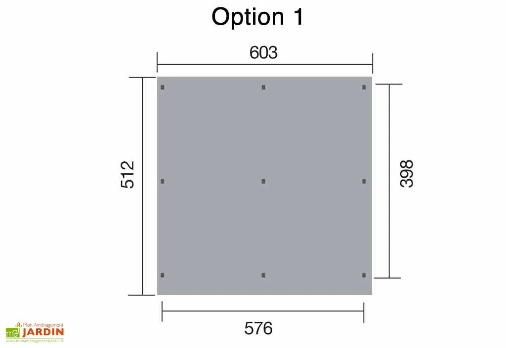 Ce carport Optima Duo a une hauteur de passage de 2,15 m, une largeur de 6,03 m et est disponible en 3 profondeurs, 5,12 m ; 6,12 m ; ou 8,02 m à choisir dans vos options. Il comportera 9, 12 ou 15 poteaux, selon la taille du carport, de sections 120×120 mm. (Les décorations visibles sur la photo ne sont pas livrées avec le carport.)