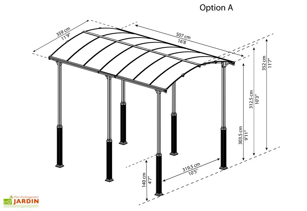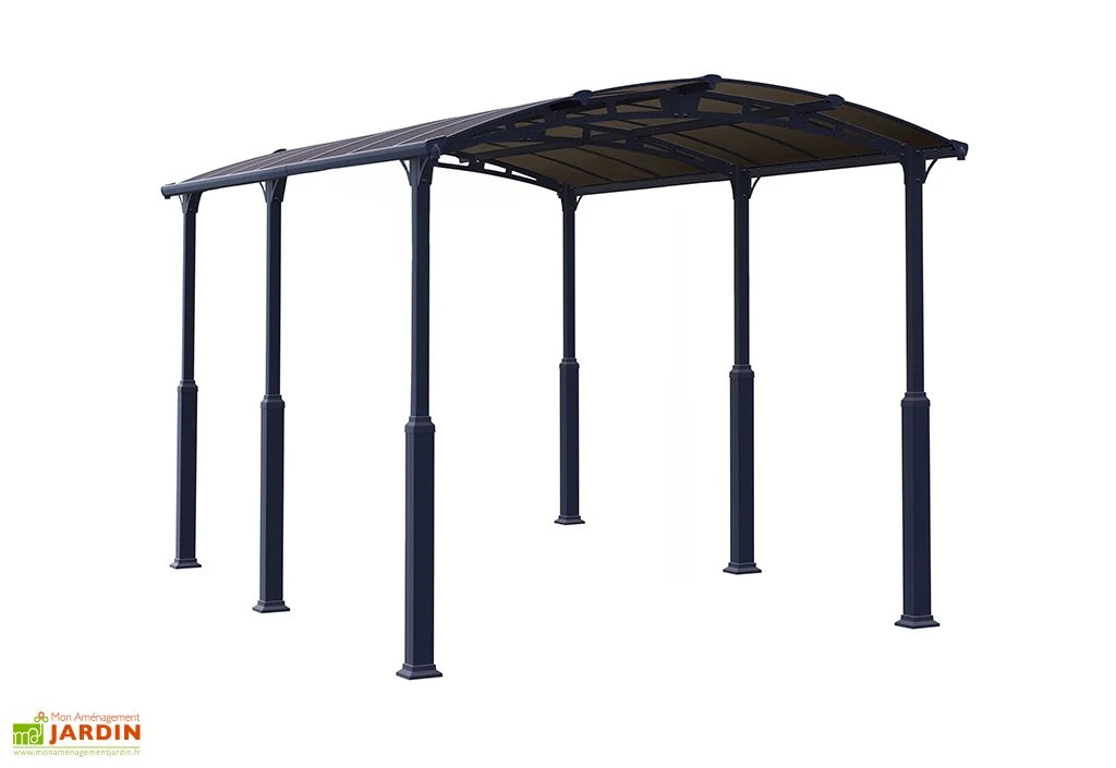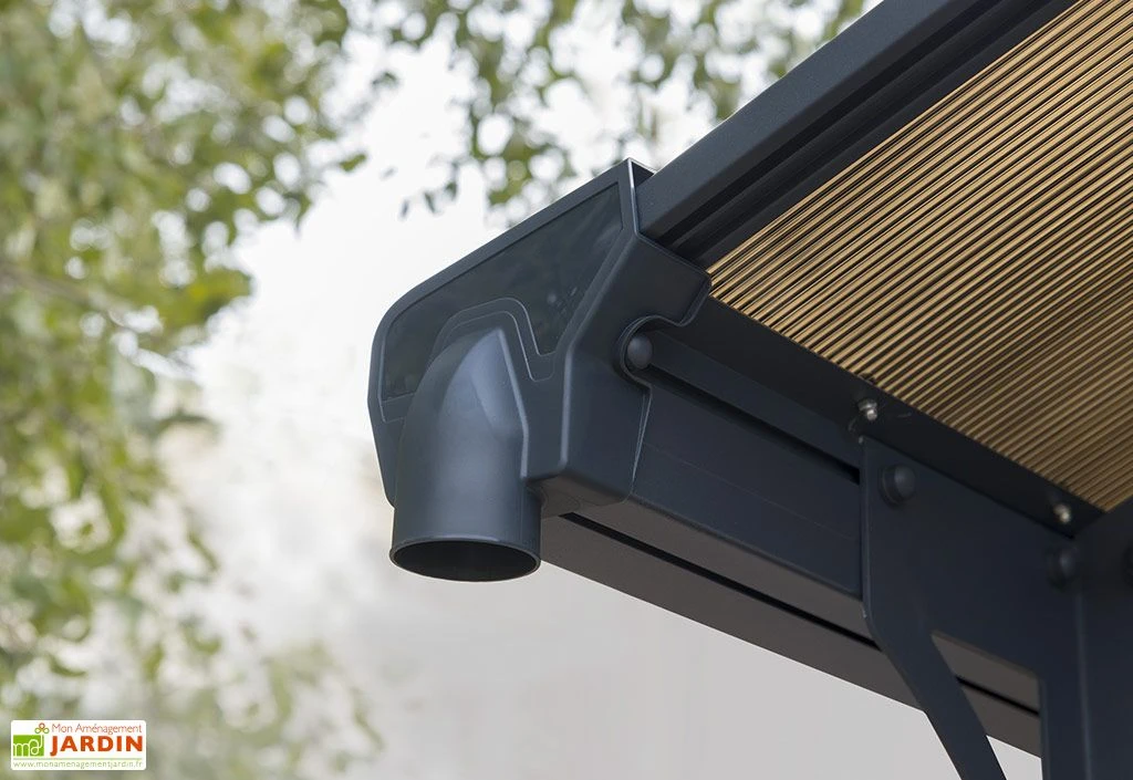 Composé d’une structure en aluminium gris anthracite RAL 7016 avec raccords en acier galvanisé et d’une couverture en polycarbonate, ce grand carport est conçu pour résister à des vents pouvant atteindre les 120 km/h. Les panneaux de 6 mm d’épaisseur qui composent sa toiture sont également très résistants et filtrent les rayons UV sans jamais jaunir.