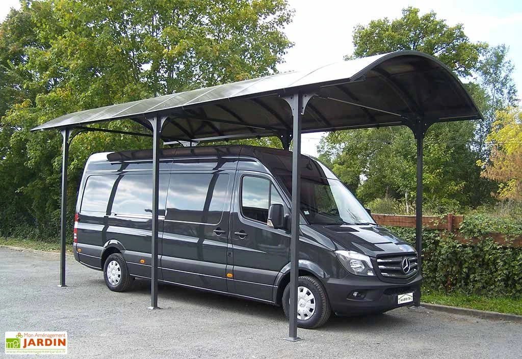 La toiture du carport est en tôle de polycarbonate de 6 mm d’épaisseur. La toiture laisse passer la lumière sans laisser passer la chaleur ni les UV. Le carport permet de protéger votre camping-car, camionnette, caravane ou encore bateau de la neige, de la pluie, des UV et des fortes chaleurs.