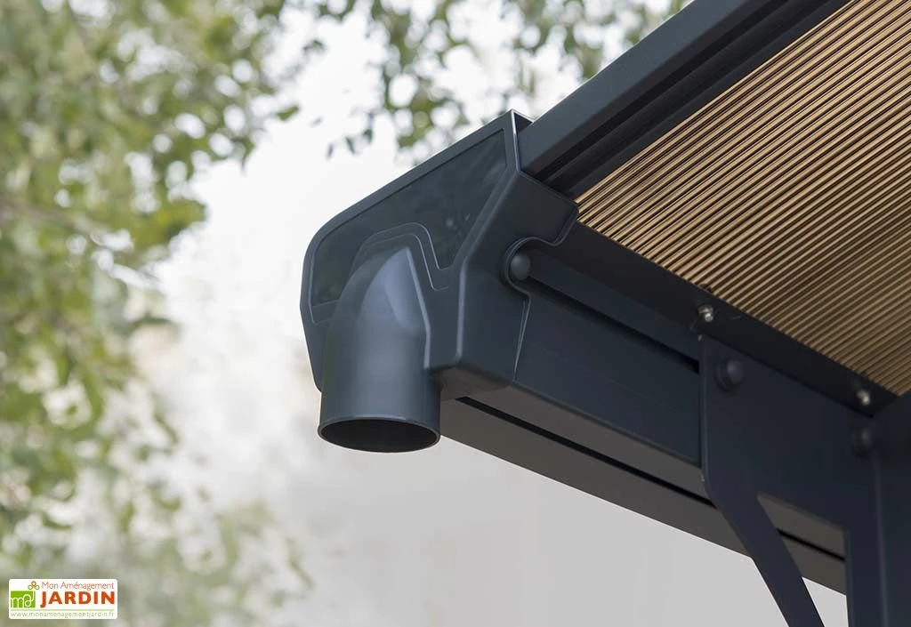 Facile à monter, ce carport est composé de six poteaux carrés de 8 cm de côté chargés de soutenir l’ensemble de la structure. Les profilés sont pré-percés, les panneaux prédécoupés et conçus pour être assemblés aisément en les faisant coulisser. Un système de gouttière est également inclus, permettant non seulement l’évacuation de l’eau, mais aussi sa collecte. Notez enfin que tous les éléments nécessaires au montage du carport sont fournis.