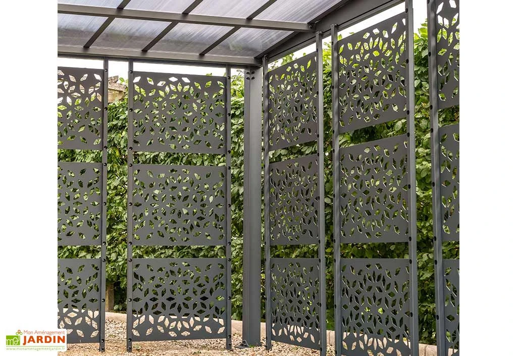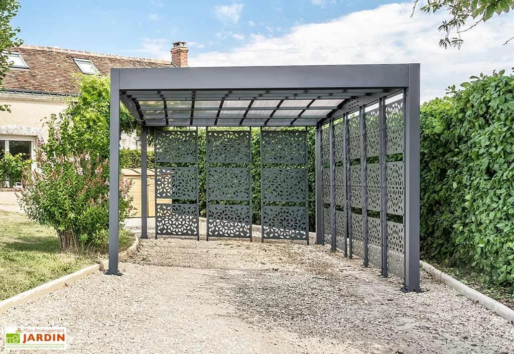 Le carport Libeccio de la marque Trigano est pensé pour être à moitié fermé à l’aide de huit brise-vues, ce qui permet de renforcer la protection offerte contre les rayons du soleil tout en plaçant votre véhicule à l’abri du vent (le carport pourra résister à des rafales atteignant les 150 km/h). Ces claustras en acier mesurent 79 x 214 cm chacun et pourront être agencés à votre convenance, le tout étant entièrement modulable.