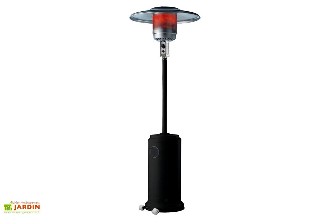 Ce chauffage à gaz d’extérieur de chez Wilsa propose un design au style de lampadaire afin de s’intégrer parfaitement au jardin. Le parasol chauffant mesure 55 cm de diamètre et 221 cm de haut. Il est disponible en deux coloris : gris et noir.