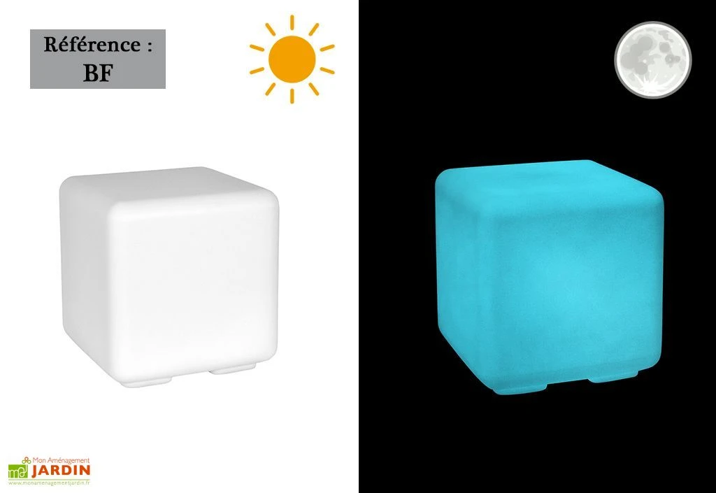 Le cube de chez Farmet New est fluorescent, il brille et change de couleur lorsque la nuit tombe. Le cube peut servir de décoration, de petite table ou de tabouret. Il mesure 43 cm de longueur, de largeur et de hauteur et il est disponible dans plusieurs coloris à choisir dans les options.
