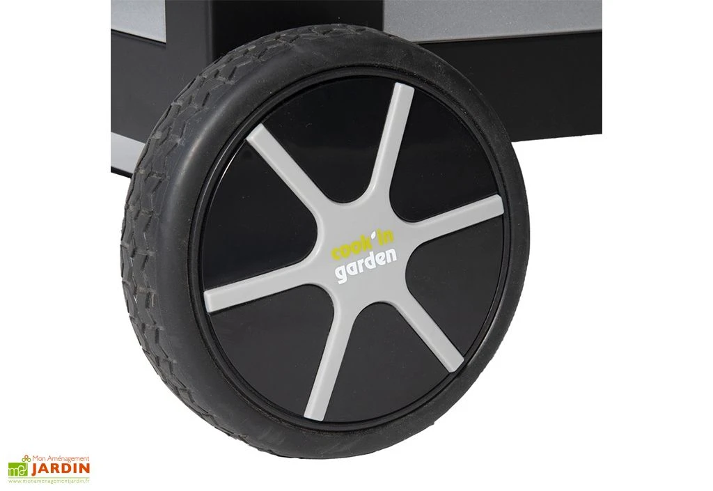 Idéale pour les grandes familles, cette desserte Nova 110 de chez Cook’in Garden affiche des dimensions de 122 x 65 cm, pour 105 cm de haut, et elle dispose d’une surface de travail de 110 x 55 cm. La desserte est multifonctionnelle, vous pouvez y installer votre plancha électrique ou à gaz et préparer vos plats à côté.