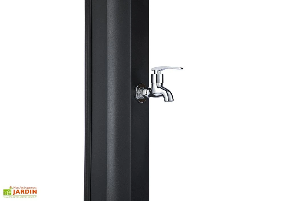 La douche solaire Jolly Go de la marque Formidra est conçue en aluminium thermolaqué, ici dans une élégante finition anthracite. Robuste et insensible à la rouille, l’aluminium est le matériau idéal pour une installation en extérieur. La douche ne vous demandera donc aucun entretien particulier et ne se dégradera pas au fil du temps.