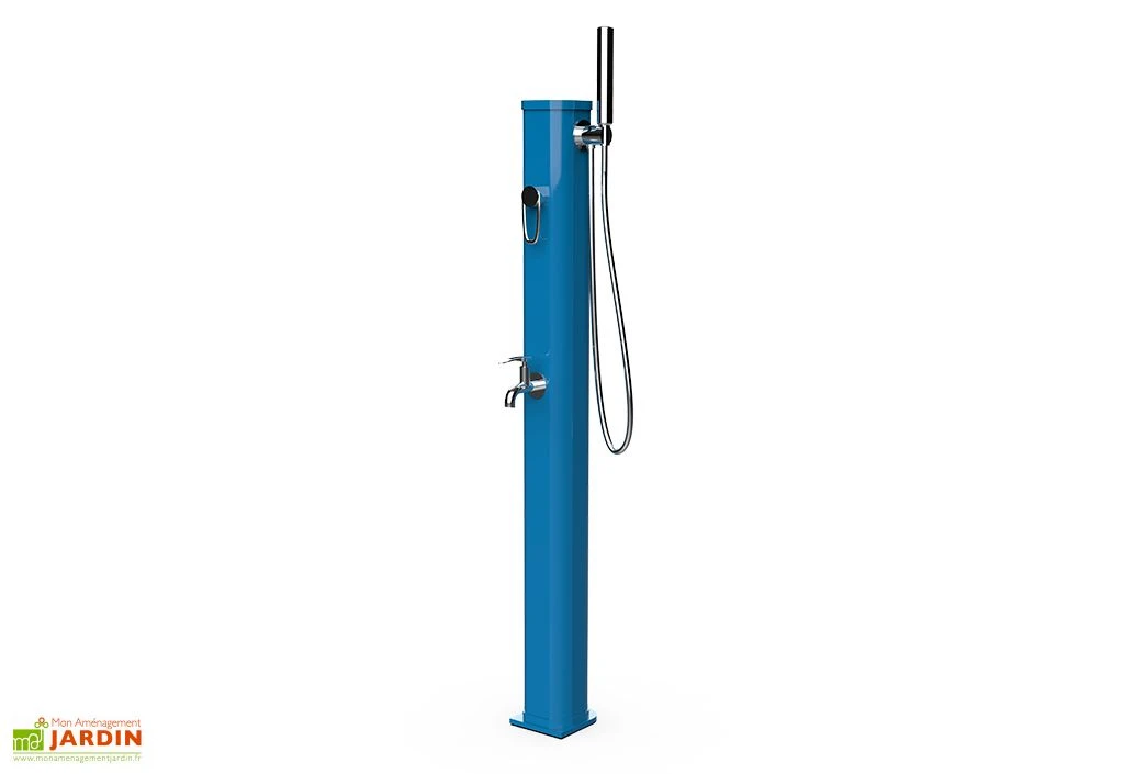La douche d’extérieur Jolly Go de chez Formidra, ici dans sa version bleue, est idéale pour se rincer avant ou après la baignade dans votre piscine. Elle est équipée d’un mitigeur afin que vous puissiez gérer facilement la température de l’eau et d’une douchette flexible grâce à laquelle vous pourrez vous rincer le corps sans avoir à vous mouiller les cheveux. Un robinet complète le tout, idéal pour le rinçage des pieds.