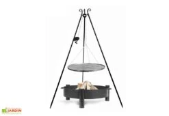L’ensemble braséro Haiti de chez CookKing comprend un trépied avec manivelle et une grille de cuisson. En plaçant le trépied et sa grille au-dessus de la source de feu du braséro, vous pourrez ainsi griller viandes, poissons, légumes, etc. De plus, il est possible de maitriser la cuisson grâce à la poulie qui permet d’ajuster la hauteur du grille sur les flammes.