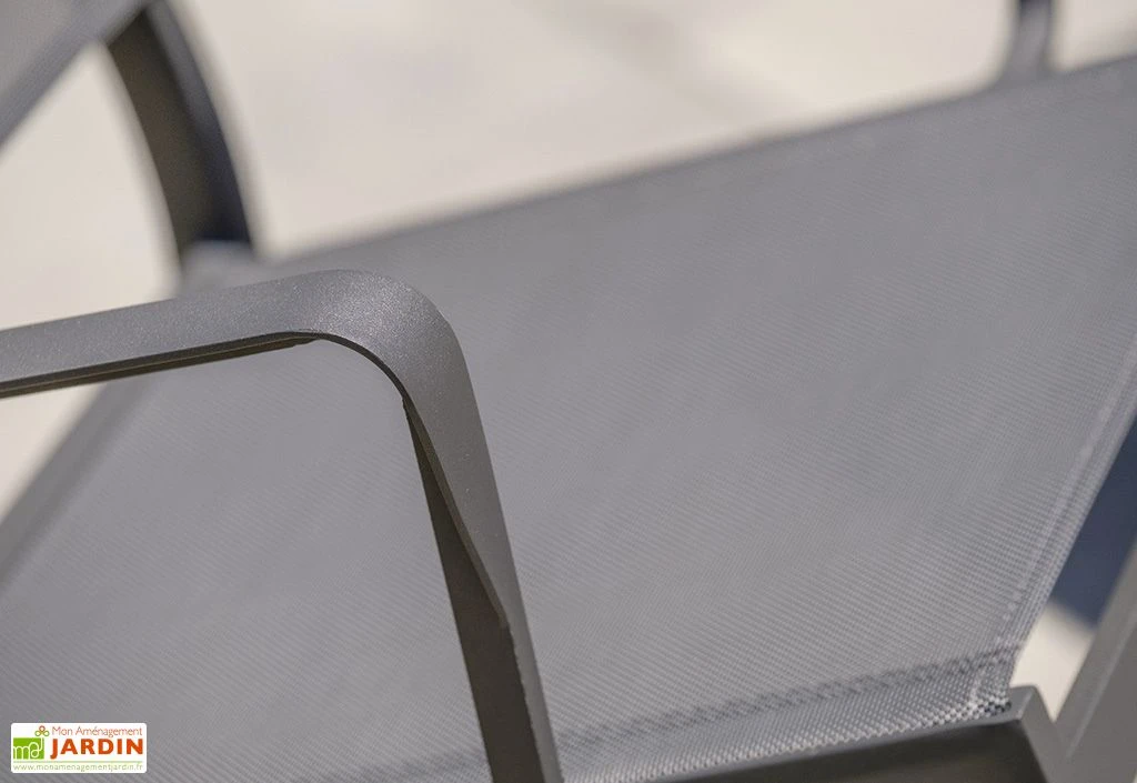 Le fauteuil de jardin Stockholm de chez DCB Garden revêt une élégante finition gris anthracite qui s’intègrera facilement dans tout type d’extérieur. Solide et confortable, il est doté d’une structure en aluminium ainsi que d’une assise et d’un dossier en textilène, une toile tissée en PVC.