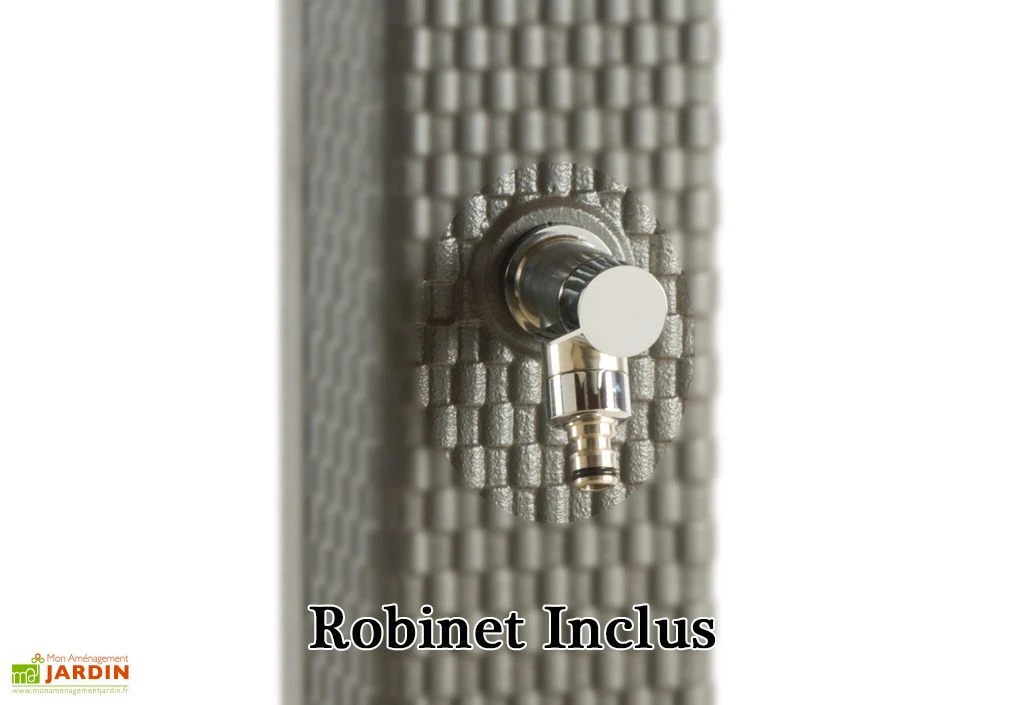 La fontaine de jardin de chez Dommartin est en fonte de fer. Elle est disponible en différents coloris à choisir dans le menu déroulant pour s’adapter à vos goûts. Elle est livrée avec son robinet chromé et dispose d’une vasque pour l’évacuation de l’eau.