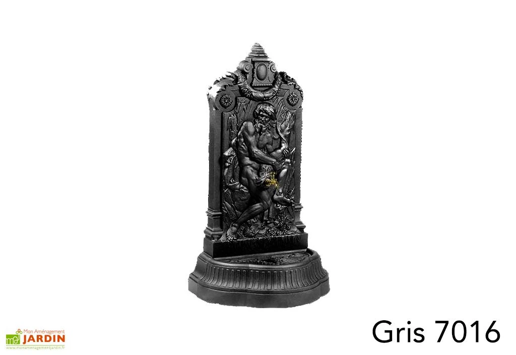 La fontaine de jardin de chez Dommartin représente le dieu de la mer Neptune. Elle est en fonte traitée anticorrosion par thermolaquage. Ce thermolaquage est disponible dans plusieurs coloris, pour s’adapter à vos envies et à votre extérieur.