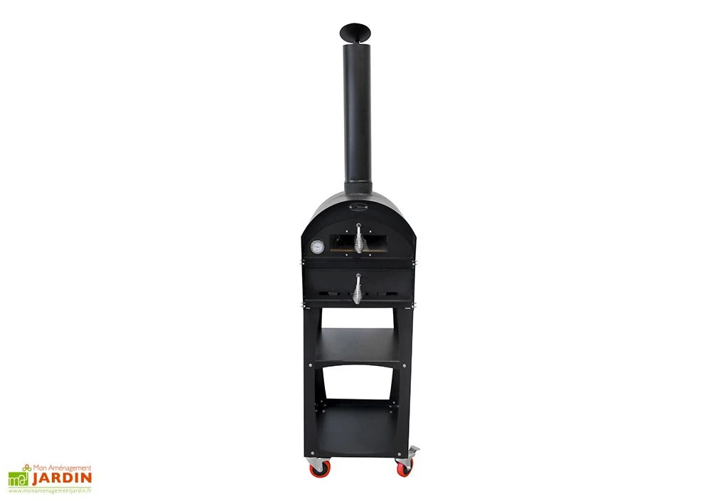 Le four à pizza extérieur fonctionne au bois. Il dispose d’une pierre réfractaire de 4 cm d’épaisseur et d’un foyer de 46 x 39 cm. Une ouverture permet de laisser passer les flammes afin de disposer d’une cuisson au feu de bois idéale pour les pizzas et tartes flambées. 20 minutes seulement sont nécessaires pour la mise en température du four.