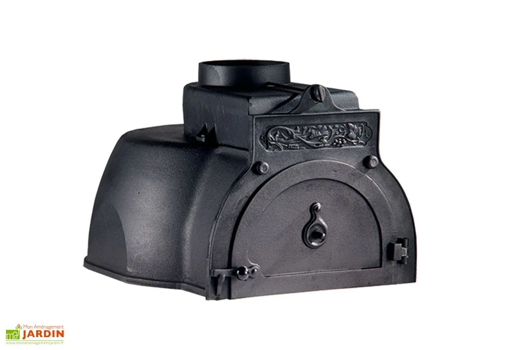 Ce four de jardin est donc fabriqué en fonte monocoque, un matériau aux propriétés thermiques intéressantes ici recouvert de peinture noire haute température, pour une meilleure résistance à la chaleur. Sa porte pleine de 44 cm de large est idéale pour enfourner aisément vos plats tandis que l’œilleton dont elle est équipée vous permettra de les surveiller pendant la cuisson. Notez que ce four devra être alimenté à l’aide de bois naturel et qu’il est déconseillé d’utiliser des produits d’allumage dérivés du pétrole, ces derniers pouvant donner un goût à vos aliments et une odeur au four.