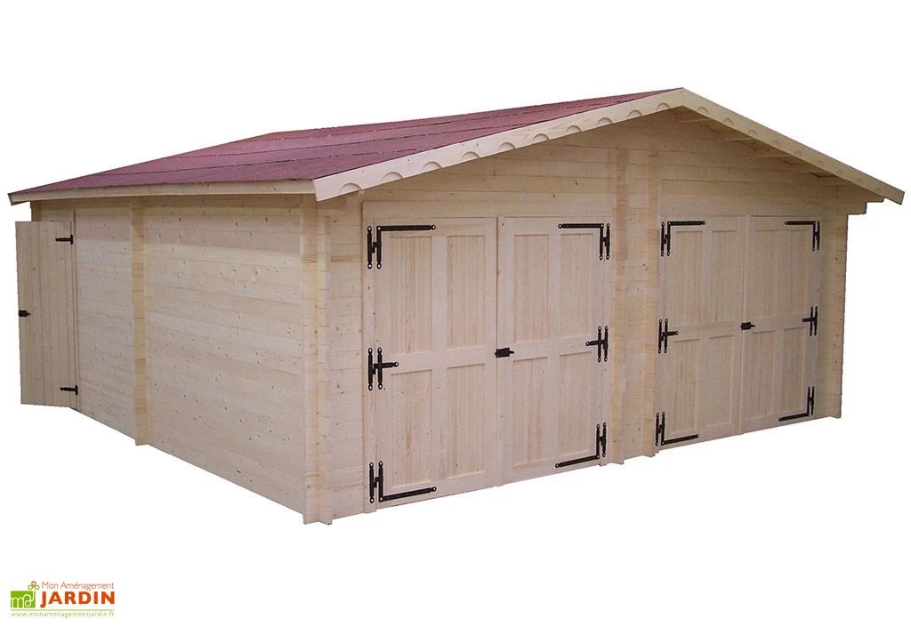 Le garage en bois est équipé de 3 portes au total. Les deux grandes portes permettant de recevoir les voitures mesurent 2,40 m de largeur et 2,00 m de hauteur et possèdent une largeur de passage de 2,36 m et une hauteur de passage de 1,98 m. Une petite porte de service à l’arrière du garage vous permet d’entrer et sortir facilement, sans avoir à emprunter les deux grandes portes avant. Elle peut être installée sur la gauche ou la droite.