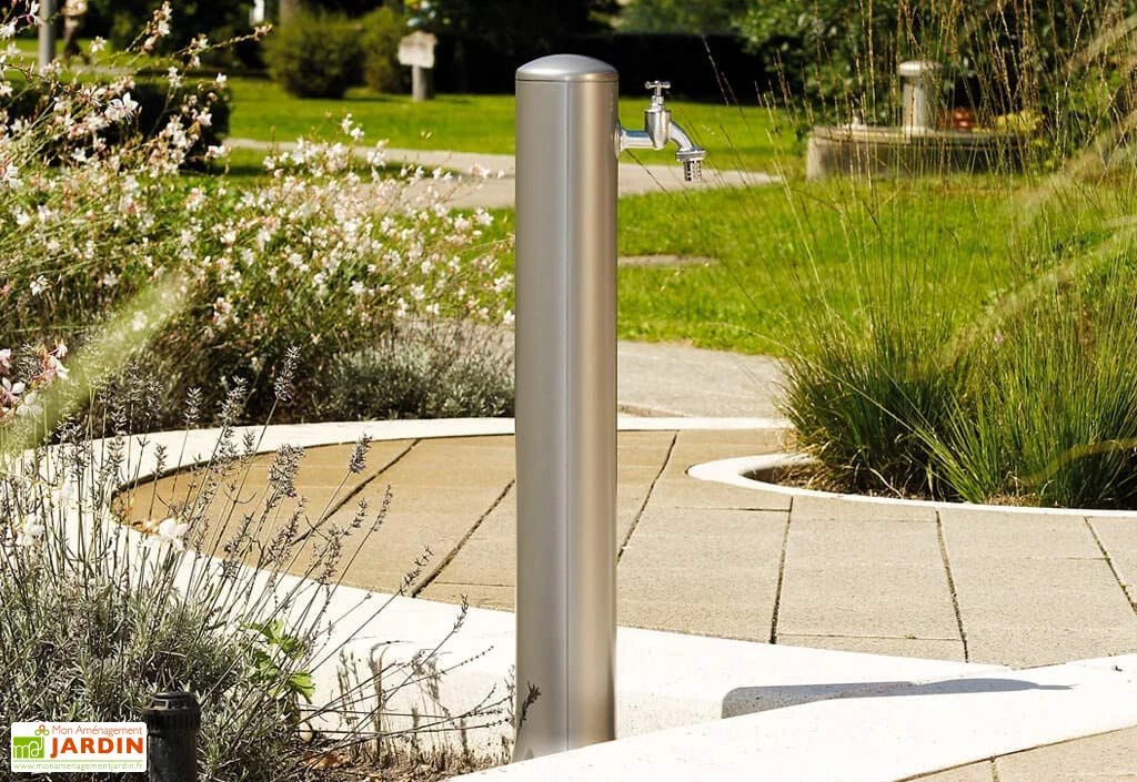 La fontaine extérieure permet de disposer d’un point d’eau à n’importe quel endroit du jardin. Elle se raccorde au réseau d’eau potable mais vous pouvez également la raccorder à un réseau interne si vous disposez d’un système de récupération des eaux de pluie.