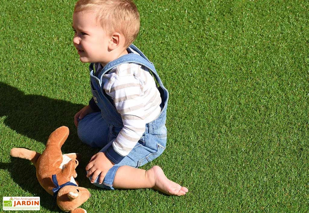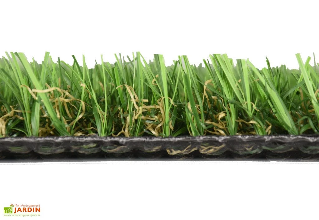 Cette pelouse synthétique mélange le polyéthylène et le polypropylène pour un toucher doux et des fibres résistantes. Les 4 tons de couleurs dont elle est dotée et ses 20 mm de hauteur lui offrent l’aspect réaliste d’une pelouse naturelle qui vient d’être tondue.