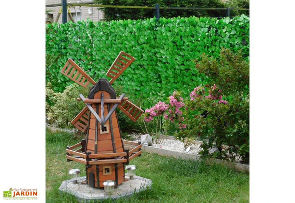 Cette haie artificielle de chez France Green imite le feuillage bien garni d’un rosier de couleur vert clair et vert tendre. Elle possède près de 1350 feuilles fines et très réalistes. Son feuillage est de haute qualité et a été fabriqué à partir de matériaux nobles et 100 % recyclables. Cette haie comporte une face simple et repose sur un maillage carré en plastique. La haie artificielle vous sera livrée en rouleaux de 3 mètres de long. Vous pouvez choisir la hauteur qui vous convient dans le menu déroulant, parmi les dimensions suivantes (hauteur, longueur) :