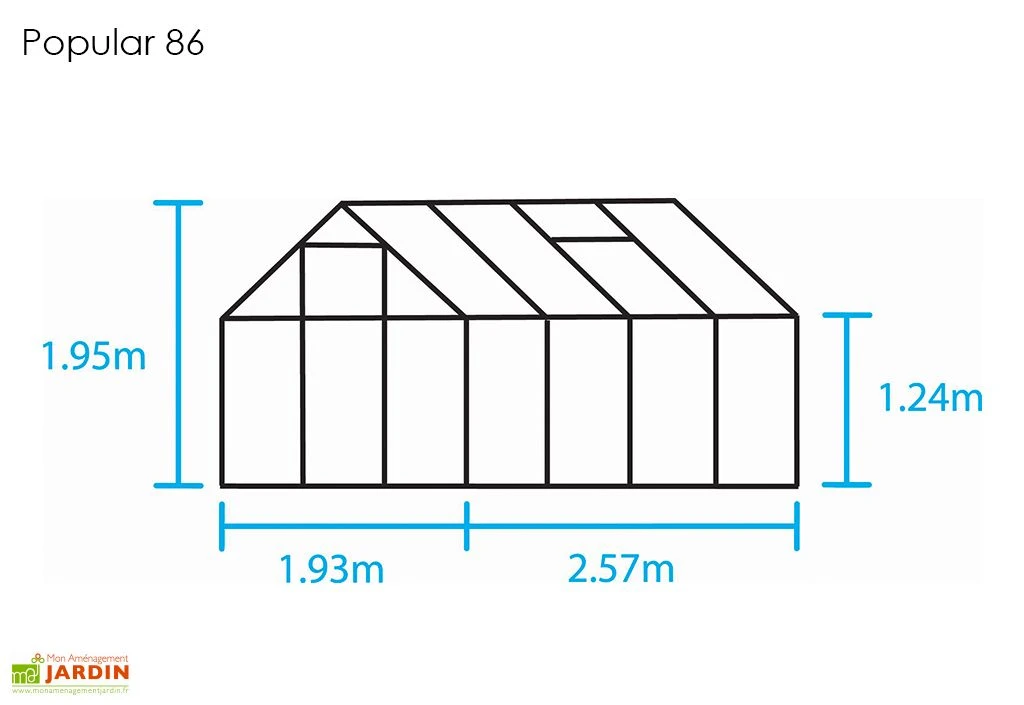 La serre de jardin Halls Popular 86 possède une armature en aluminium, un matériau à la fois léger, solide et insensible à la corrosion. Cette structure est complétée par des vitrages en verre horticole de 3 mm d’épaisseur, un type de verre idéal dans le cas d’une serre puisqu’il retient bien la chaleur et laisse passer l’essentiel de la lumière naturelle tout en filtrant les rayons ultraviolets.